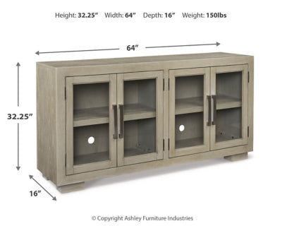 • This dining room server has a clean, contemporary design with a relaxed sensibility. Its sturdy silhouette sports a trend-right gray taupe finish. Two sets of double doors elevate the streamlined design with their see-through glass fronts, perfect for displaying your favorite dinnerware. Aged pewter-tone bar pulls add a finishing touch.