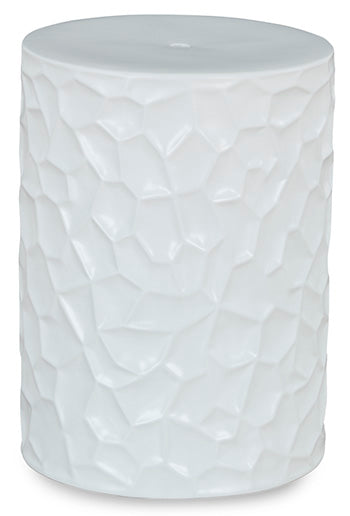 Inspired by modernist sculpture, this contemporary accent stool is an homage to the power of art. Ideal for any outdoor or indoor living space, it features bold irregular patterned sides and a minimalist matte white finish, creating an instant aura of forward-thinking flair.